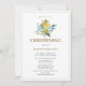 This elegant and simple Christening invitation features beautiful watercolor green blue foliage and a gold cross on a white background. Use the Design Tools to personalise the text, font and background colours. Also available as download.