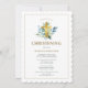 This elegant and simple Christening invitation features beautiful watercolor green blue foliage and a gold cross on a white background. Use the Design Tools to personalise the text, font and background colours. Also available as download.