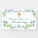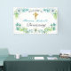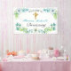 Welcome your friends and family to your baby's baptism reception or ceremony with this pretty blue floral Christening Welcome Banner. It's an elegant design that features a pretty gold cross and blue and white floral bouquets at the top and the bottom of the sign. Customise this Christening banner with the name of your baby.