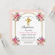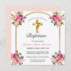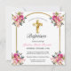 Elegant Gold Cross PInk Floral Baptism Invitation