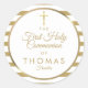 Elegant Gold Cross Stripe First Holy Communion Classic Round Sticker