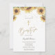 Elegant Gold Cross Sunflowers Baptism Invitation