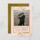These beautiful engagement announcement cards are a wonderful way to let your friends and family know that you'll be tying the knot. The elegant gold and blush pink design features your photo in a faux foil golden frame surrounded by ornate curls & swirls. The title reads "We're Engaged!" with space for your names and a short note. The back is a deep marbled gold colour.