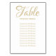 Elegant faux gold script and white custom text Wedding Table Number, Guest Seating Chart Card.