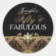 Gold & Black 50 and Fabulous Birthday Sticker. Elegant damask & jewel Design. Please note: All flat images.