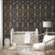 This design features a luxurious damask pattern in rich gold tones set against a deep, dark background, creating a striking contrast. The intricate floral and ornamental motifs exude a timeless elegance, reminiscent of classic European decor. Perfect for wall art, this pattern adds a touch of sophistication and grandeur to any space, whether it's a formal living room, a stylish hallway, or a vintage-inspired bedroom. Its regal aesthetic makes it ideal for those looking to incorporate a sense of history and opulence into their interior design.