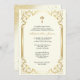 Featuring a beautiful custom designed gold Sacrament of Confirmation invitation of a white dove with blue roses overlaid on a gold cross.