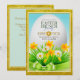 Welcome the arrival of spring with this elegant Easter Brunch Invitation. This design features a striking gold glitter-textured border that frames a beautiful meadow scene. At the center, a large, glowing white egg serves as the backdrop for your event details, surrounded by vibrant yellow daffodils, white daisies, and a lush green satin ribbon.