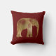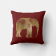 This pillow shows a stunning Gold Elephant on a rich Burgundy Background.