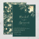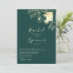 Celebrate your special day in style with this luxurious emerald green and gold wedding invitation. Featuring elegant floral gold accents and a modern monogram in the top corner, this sophisticated design balances glamour with timeless charm. Perfect for couples seeking a stylish, upscale invitation with a chic minimalist layout, this invite is a striking introduction to your romantic celebration.