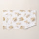 Simple and elegant holiday botanical design featuring gold engraved evergreen branches with pine cones and optional "Peace" text graphic in flowing script font on hand towel.
