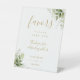 Elegant Gold Floral Greenery Modern Script Favours Pedestal Sign