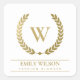 ELEGANT GOLD FLORAL LAUREL WREATH INITIAL MONOGRAM SQUARE STICKER