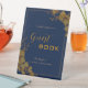 Elegant Gold Floral Navy Blue Guestbook Sign