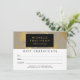 A vintage-inspired faux gold floral pattern creates a beautiful backdrop on this customisable gift certificate template. Your name or business name is stylishly displayed within a gold framed black nameplate on the front. Perfect for salons, boutiques, makeup artists, spas and more. This product is part of a series of coordinating office supplies to help brand your business. Art and design © 1201AM Design Studio | www.1201am.com