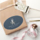 Elegant gold flowers and white salon scissors logo style design, personalised stickers with two lines for custom text. Background colour shown in trendy muted navy blue can be customised.