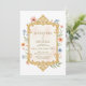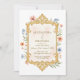 An elegant wedding invitation design featuring a vintage gold ornamental frame surrounded by soft watercolor florals in blush, peach, and blue tones. The refined layout and classic typography create a timeless, romantic aesthetic inspired by European stationery. Perfect for formal, garden, or classic weddings, this design balances luxury and softness, making it ideal for couples seeking a graceful and sophisticated celebration style.