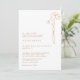 Gold floral line art Wedding Invitation. Elegant. Gold text. White background.
