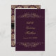 © 2013 Socialite Designs. Our elegant event response card has beautiful gold damask on an eggplant (Hex - 2E0922) coloured background and a flourish design. Pair this elegant RSVP card with the matching invitation.