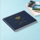 Elegant dark blue graduation party guest book with real gold foil featuring a grad cap, "Graduate" and the graduate's name, school and class year in classic serif typography. Personalise additional text on the spine and the back.