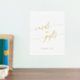 This elegant gold foil calligraphy cards and gifts foil print is perfect for a simple wedding or bridal shower. The neutral design features a minimalist sign decorated with romantic and whimsical luxurious pressed gold foil typography. The line of text at the bottom of the sign can be personalised with the date, the names of the bride and groom, or a short message like "Thank you". This sign can be used for a wedding or any event or party.