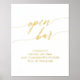 This elegant gold foil calligraphy wedding open bar foil print is perfect for a simple wedding. The neutral design features a minimalist poster decorated with romantic and whimsical luxurious pressed gold foil typography.