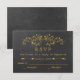 Elegant wedding design featuring faux gold foil flourish decorative illustration, arrows with hearts, on a black textured background. Use Customise tool to add your info. For more, visit my Gold Foil Flourish Swirl Wedding Collection.