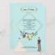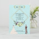 An elegant, modern wedding invitation featuring a soft dusty blue background, glamorous gold foil typography, a geometric frame, and stylish botanical elements. Perfect for a luxury or rustic-chic wedding suite