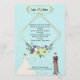 Elegant Gold Foil Geometric Dusty Blue Wedding Invitation