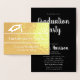 Graduation cap and the words 'Graduation Party' are on the front of this gold foil card. Inside the background is black, you can personalise your message with the details of your graduation party.