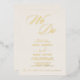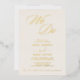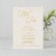 This beautifully romantic wedding invitation features exquisite gold foil hand-lettered typography on a soft ivory cream background. Delicate swirls and whimsical flourishes add a touch of timeless elegance, making it perfect for a classic yet simple celebration.