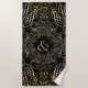 Elegant Gold Foil Look Filigree Scrollwork Black Beach Towel