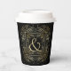 Elegant Gold Foil Look Scrollwork Script on Black Paper Cups