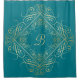 Elegant Gold Foil Look Scrollwork Script on Teal Shower Curtain