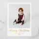 A classic and elegant Christmas card is perfect for celebrating the holidays. The front of the card has a photo and Merry Christmas script in foil.