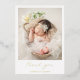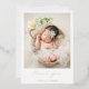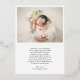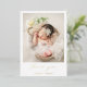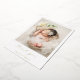 Modern birth announcement card with a simple design featuring a vertical photo of your newborn baby boy or girl along with "thank you" in an elegant script and baby's name below. All text on the front is in real gold foil. The back has a second picture and your personalised message. This minimalist style announcement card is the perfect way to announce your new baby to all of your loved ones.