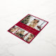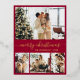 Elegant Calligraphy Minimalist Gold Foil Script Red 4 Photo Collage Merry Christmas Holiday Card. This festive, mimimalist, whimsical four (4) photo holiday card template features a pretty photo collage and says „Merry Christmas”! The „Merry Christmas” greeting text is written in a beautiful hand lettered swirly swash-tail font type in gold on burgundy red colour background. On the reverse side with greeting text template with a little heart doodle on white and one horizontal photo template. Pretty greeting card for your family and friends in Christmas Holiday season.