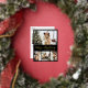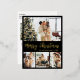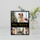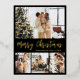 Elegant Calligraphy Minimalist Black and Gold Foil Script 4 Photo Collage Merry Christmas Holiday Postcard. This festive, mimimalist, whimsical four (4) photo holiday card template features a pretty photo collage. The „Merry Christmas” greeting text is written in a beautiful hand lettering brush script font type in gold on black colour background. On the reverse side with greeting text template with a little heart doodle on white and one photo template. Pretty greeting card for your family and friends in Christmas Holiday season.