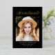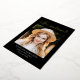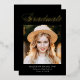 Elegant graduation announcement featuring "Graduate" displayed at the top in a gold foil calligraphy script with a black background (or color of your choice). The design features the graduate's photo with their name, school name, and graduation year shown below. The photo graduation announcement reverses to display optional text such as future plans, graduation party details, etc. The chic graduation announcement is perfect for announcing the graduation of both high school and college graduates.