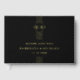 This elegant Gold foil Stripes and Initials black Wedding Guest Book showcases a group of vertical gold foil stripes positioned at the centre. Enclosed within a circular frame accented with two small hearts, the book proudly presents the initials of the happy couple all in gold foil on black background. The back cover is adorned with a captivating pattern of gold stripes against a black background, adding a touch of sophistication to this beautiful keepsake.