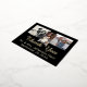 Elegant handwritten style modern wedding thank you multiple photo collage postcard [with REAL Gold Foil]. Designed to add three of your favourite photos & easily add your names and wedding date for a truly customised design. Elegant script font and trendy black background. For the holidays—Merry Christmas blessings.