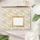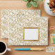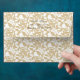 This elegant envelope has the look of a gold frame against an ivory floral wallpaper. The inside is a striking marbled paper design. Perfect for wedding invitations or holiday cards. Look for matching cards and invitations too.