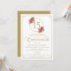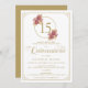 Elegant Gold Frame & Burgundy Rose Quinceanera Invitation