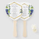 Elegant Gold Frame Navy White Rose Floral Wedding Ceremony Program Hand Fans.