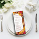 Guide your guests through your special day with our exquisite wedding program. This captivating design features a rustic backdrop of autumn leaves, complemented by a shorter, elegant white panel adorned with a shimmering gold frame and surrounded by autumn foliage. The couple's names are prominently displayed in bold typography, followed by the wedding date and venue location.