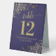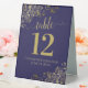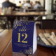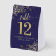 Elegant Gold Frills Navy Blue Wedding Table Number