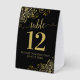 Elegant Gold Frills on Black Wedding Table Number