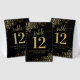 These beautiful table tent signs will make it easy for your guests to find their tables at your wedding reception. The elegant black and gold design features lacy script calligraphy with ornate floral curls and swirls in the corners. There is space for the names of the couple and the wedding date.