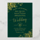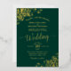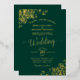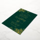 This beautiful wedding invitation features real foil printing on an emerald green background. The beautiful design has lacy script calligraphy with fancy floral filigree in the corners. Stylish, elegant, sophisticated, and chic, this invitation is fancy and glam.