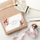 Elegant rectangular wedding thank you sticker with gold geometric frame, burgundy florals, and white background — personalized with couple’s names and date.